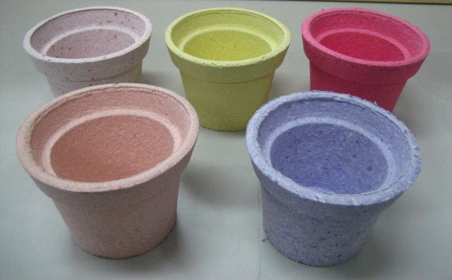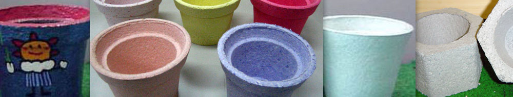 はちろう君で作る 「リサイクルペーパーポット」とは?? ◇色々なカラーの植木鉢を作ることが出来ます。 ◇もしも植木鉢が製作中に破損したり、使用段階で壊れてもリサイクルが可能です。何度でも作り直す事が出来ます。 ◇型次第では、植木鉢以外の物も制作する事が出来ます。(但し、中心が取れる型に限られます。) ◇接着剤等の化学物質を一切使用することなく、水と古紙だけで作ることが出来るので、人と地球にとても優しく安全です。 ◇植木鉢を土の中に入れると自然分解しますので、ゴミが発生しません。 ◇従来の紙製植木鉢に比べて、とてもきれいな仕上がりです。 ◇色々な原材料(使用済み切符・紙幣・色紙・堆肥・ケナフ・草・炭等)を使用することにより独創的な植木鉢を手軽に製造出来ます。、様々な独創的な植木鉢を作成することが出来ます。 ◇従来の植木鉢との比較表